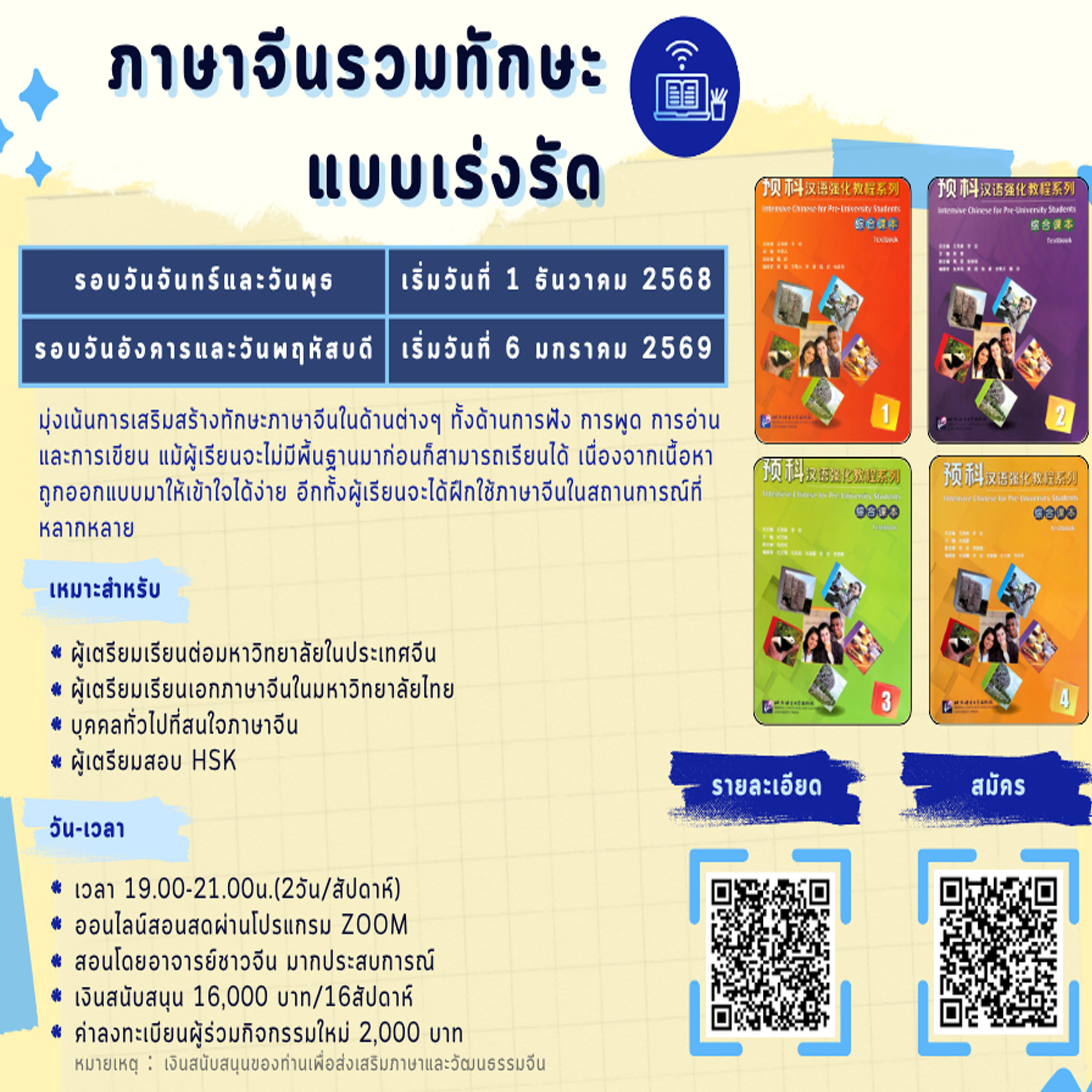 " ใครอยากได้ทักษะภาษาจีนครบจบ...ยกมือขึ้น ภาษาจีนรวมทักษะแบบเร่งรัด ฟัง-พูด-อ่าน-เขียน ครบ! ใช้ได้จริง "